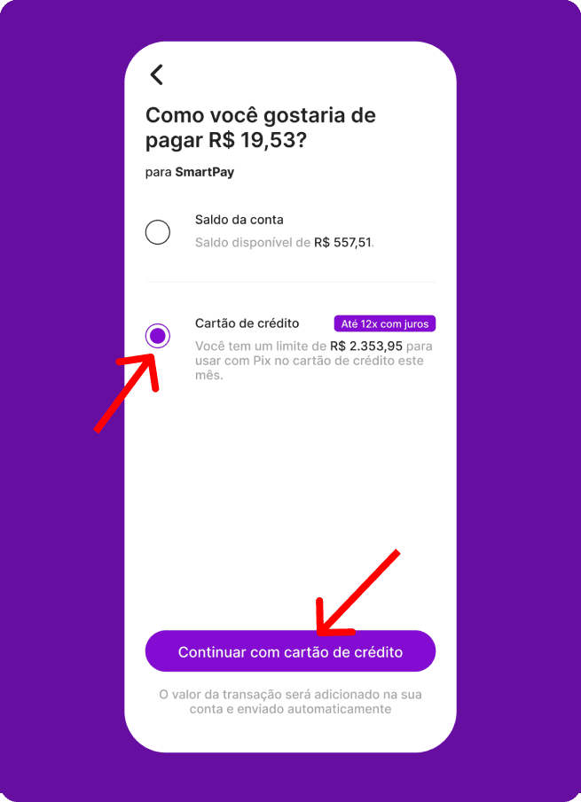 Abra seu aplicativo do Inter e selecione a opção "PIX no Crédito".